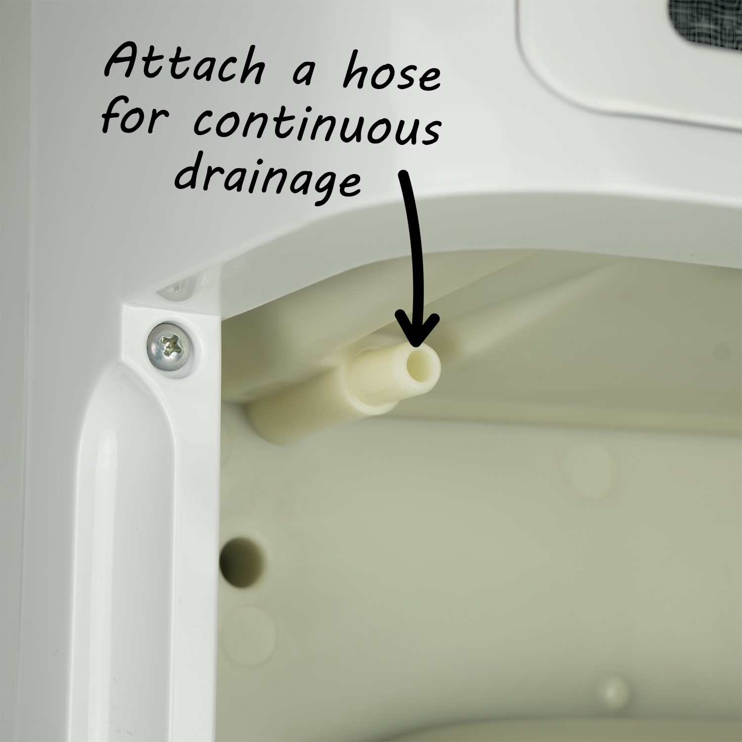 Once the water tank has reached its total capacity, the unit will automatically stop running to avoid overflowing. A full water light will then appear to indicate that the tank needs emptying. The CD20L can also be set up for continuous draining by connecting a hose into the drain outlet at the back.