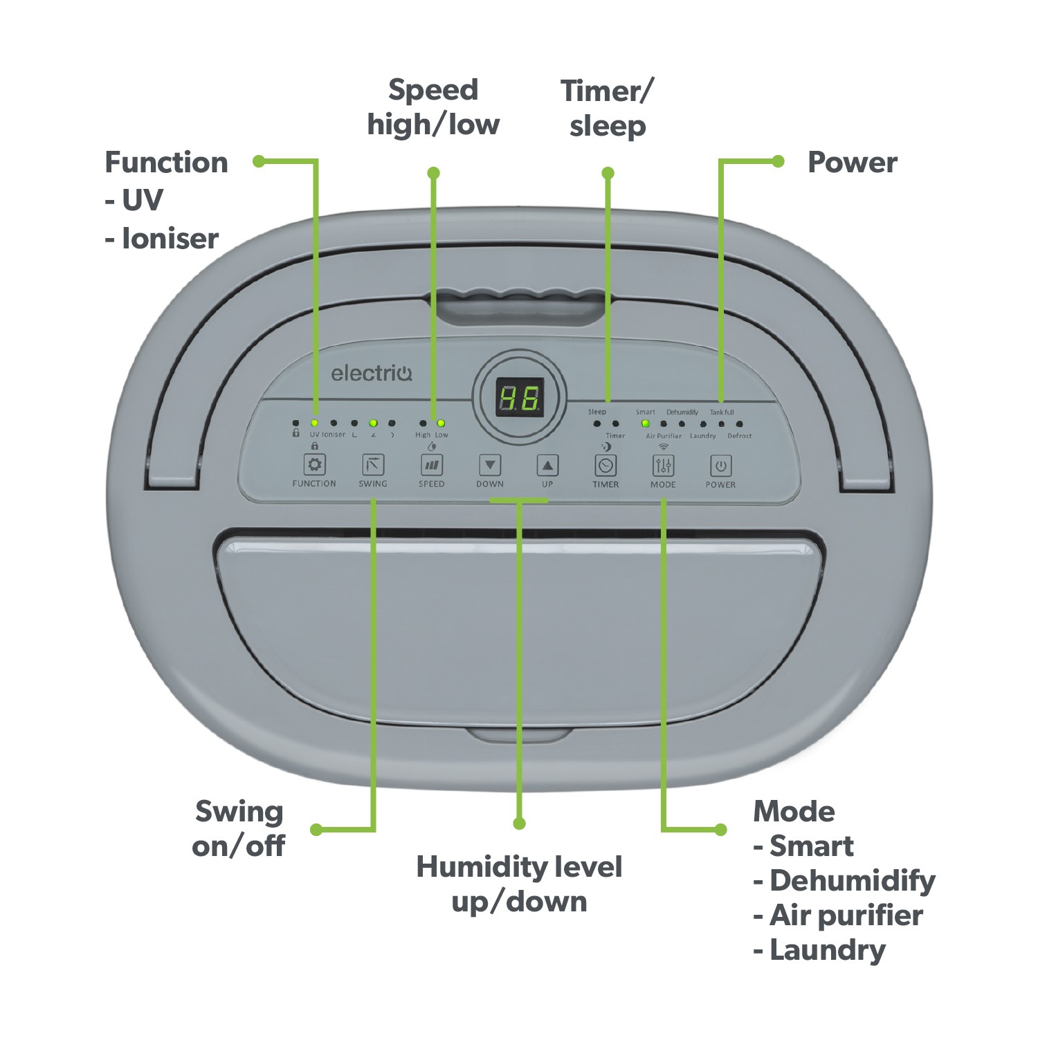 - Advanced air purifier function with UV sterilisation