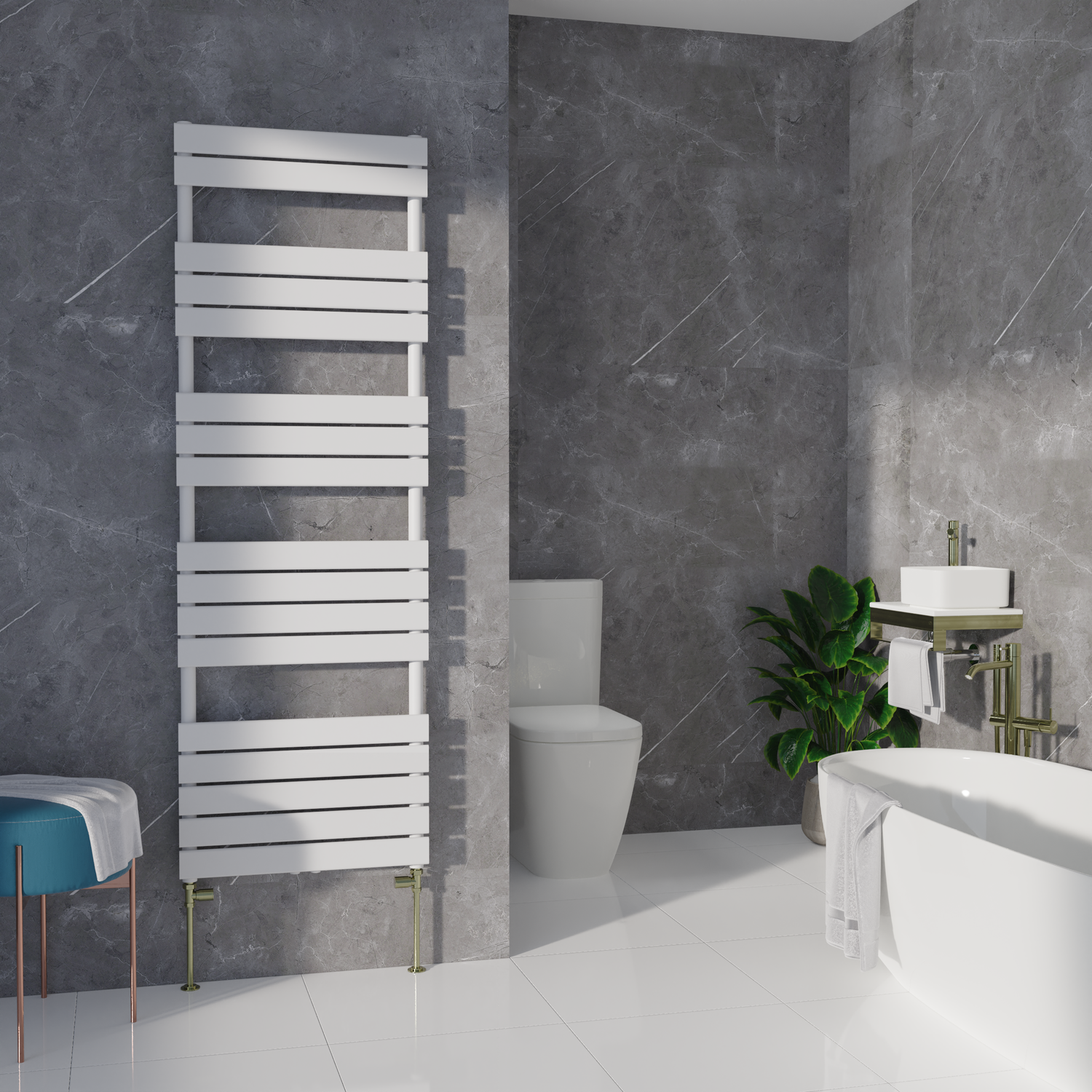 This pair of modern radiator valves feature a high-quality brass perfect for adding a finishing touch to modern or designer radiators and heated towel rails. Featuring a 1/2" thread, these valves are compatible with all our radiators – including heated towel rails, column radiators, panel radiators, vertical flat tube radiators, and aluminium radiators.